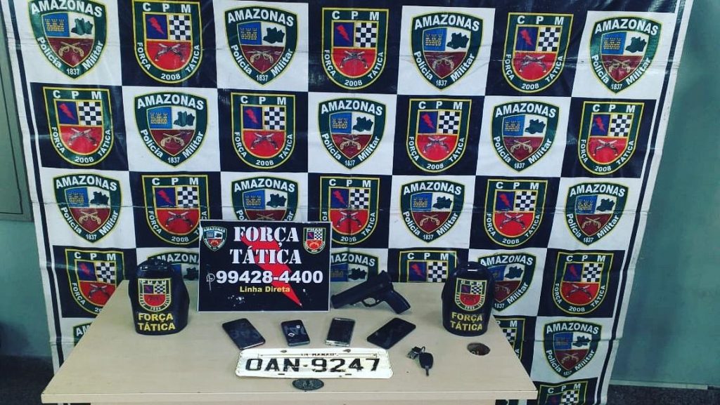 A Polícia Militar do Amazonas (PMAM), por meio da Força Tática, deteve, na manhã desta quinta-feira (06/02), três homens, de 19, 26 e 20 anos de idade, e apreendeu um adolescente de 16 anos por roubo. O fato ocorreu no boulevard Álvaro Maia, no bairro Praça 14, zona sul de Manaus.