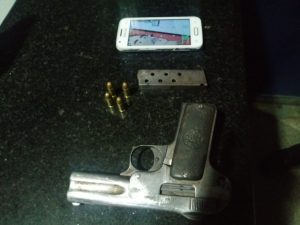 O trio estava com uma pistola 765 com quatro munições. No momento da abordagem, o armamento foi encontrado com o menor de 11 anos. Segundo o supervisor de área da 22a Cicom, Tenente Francisco Araújo, a ação da polícia foi rápida e precisa. Os três já possuem passagem por outros delitos, inclusive roubos.
