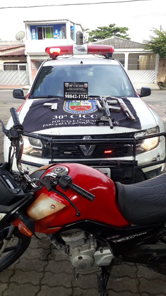 As equipes foram ao local apontado pelo GPS, mas o proprietário da casa não estava. Porém, a motocicleta foi encontrada na lateral interna da residência. Também foram encontradas armas de fabricação artesanal, tipo fuzil, calibre 12 e pistola.