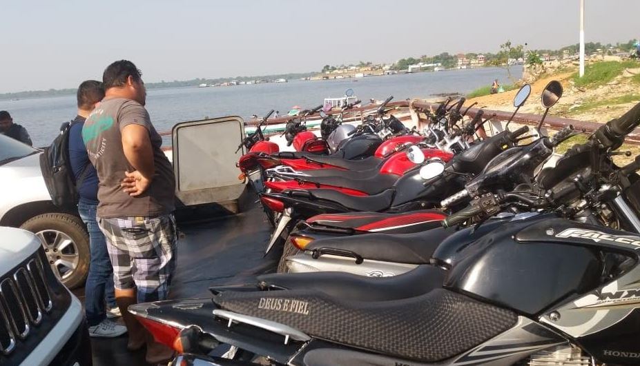 Na embarcação foram encontradas as motocicletas e seu responsável. Durante a abordagem, os policiais pediram os documentos das motocicletas, sendo constatado que todos estavam irregulares. De imediato os policiais acionaram os agentes do Intrans, que apreenderam as motocicletas e conduziram o responsável para ser autuado.