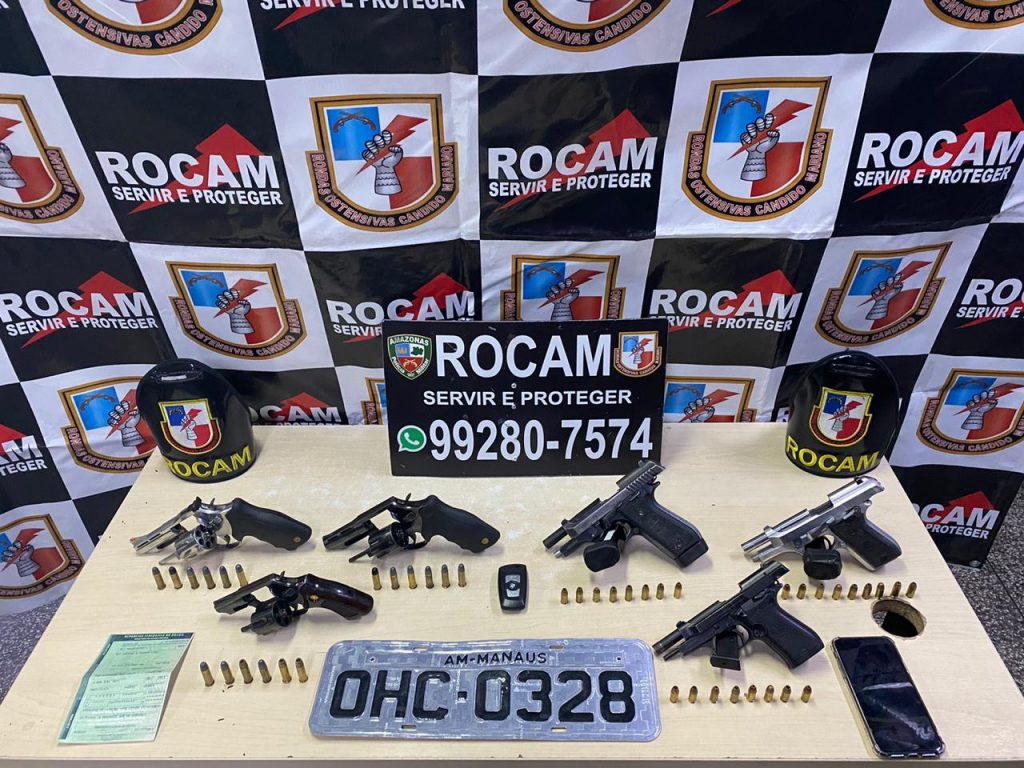 Outro homem, também de 35 anos, foi preso com armas de fogo no bairro Compensa, zona oeste. A prisão ocorreu após denúncia à linha direta das Rondas Ostensivas Cândido Mariano (Rocam). Após abordagem ao veículo do suspeito, na avenida Brasil, foram encontradas uma pistola calibre 380, três revólveres de calibre 38, duas pistolas calibre 380, além de 18 munições de calibre 38 intactas, e outras 25 munições calibre 380 intactas. O veículo e um aparelho celular também foram apreendidos.