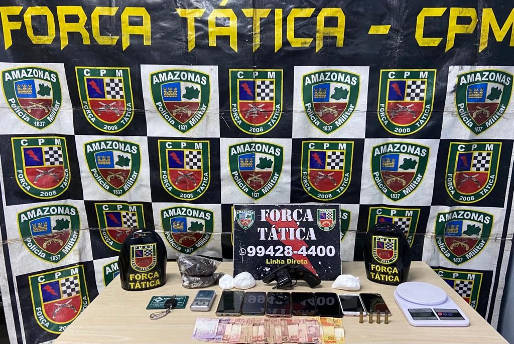 Nas últimas 24 horas, 16 pessoas foram presas em Manaus e no interior do estado, e quatro adolescentes foram apreendidos. Os flagrantes foram por crimes de tráfico de drogas, porte ilegal de arma de fogo, estupro de vulnerável, entre outros. Na capital, os militares apreenderam 526 trouxinhas, três quilos de maconha e cocaína, três armas de fogo, quatro munições, três balanças de precisão e R$ 14,7 mil em espécie.