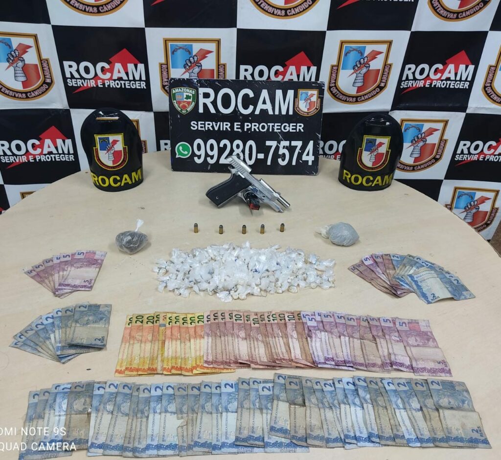 Policiais militares das Rondas Ostensivas Cândido Mariano (Rocam) apreenderam 38 quilos de drogas no interior de um automóvel localizado na avenida Padre Agostinho Caballero Martins, bairro São Raimundo, zona oeste de Manaus. Na ação policial foram presos, em flagrante, dois homens, de 24 e 27 anos, por tráfico de drogas. O 19º Distrito Integrado de Polícia (DIP) registrou a ocorrência.