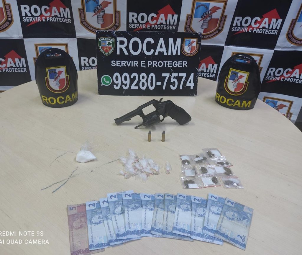 A 15ª Cicom registrou também a prisão de dois homens, de 20 e 21 anos, e a apreensão de um adolescente de 17 anos, no Loteamento Águas Claras, bairro Novo Aleixo, zona norte. Porções de drogas motivaram as prisões.