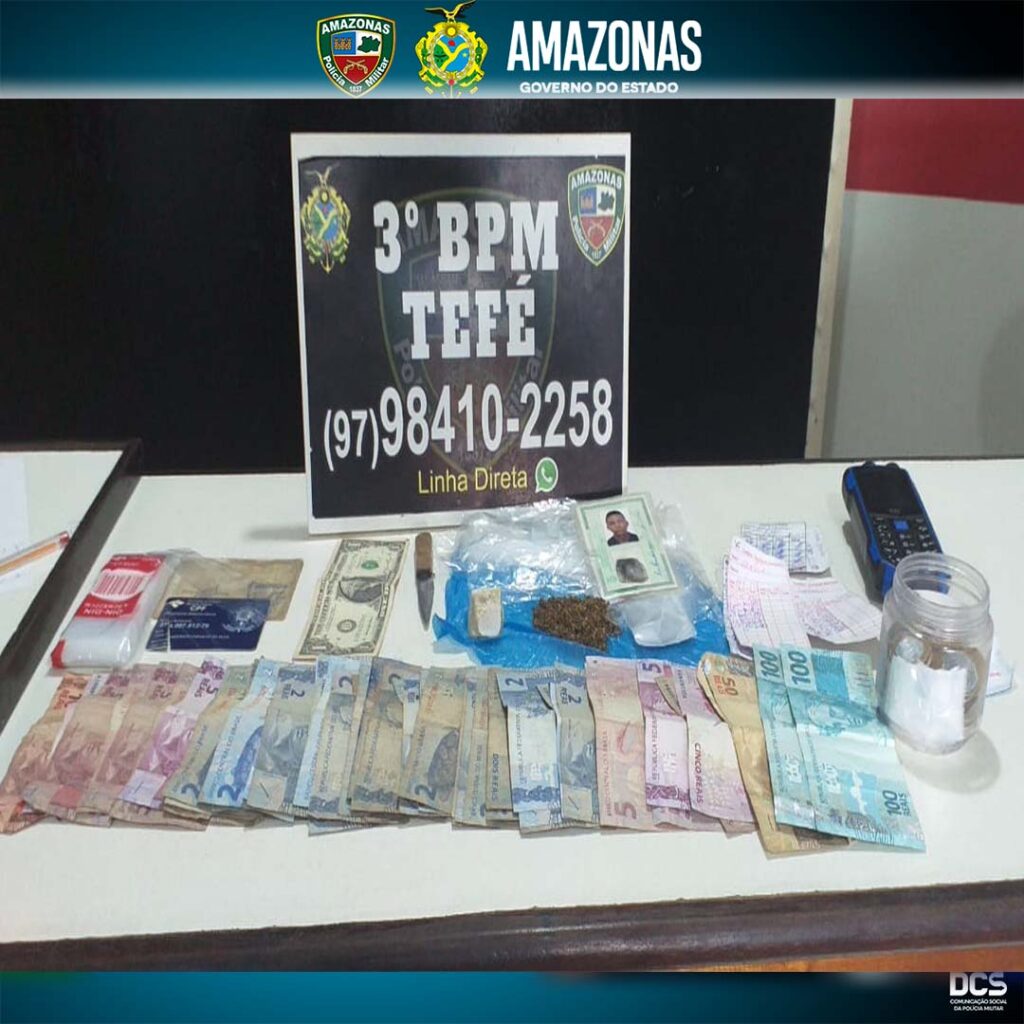 Policiais militares do 3° Batalhão de Polícia Militar (BPM) detiveram, na manhã de segunda-feira (19/04), dois homens, de 25 e 33 anos, por furto, receptação e tráfico de entorpecentes, na rua Belo Horizonte, bairro Abial, município de Tefé, distante 523 quilômetros de Manaus.