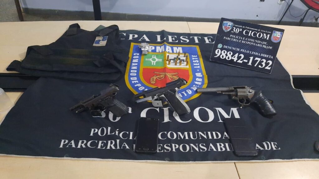 Policiais militares da 30ª Companhia Interativa Comunitária (Cicom) detiveram, na noite de quarta-feira (24/02), dois jovens, ambos de 18 anos, por posse ilegal de armas de fogo e prática de assaltos no bairro Jorge Teixeira, na zona leste da capital.