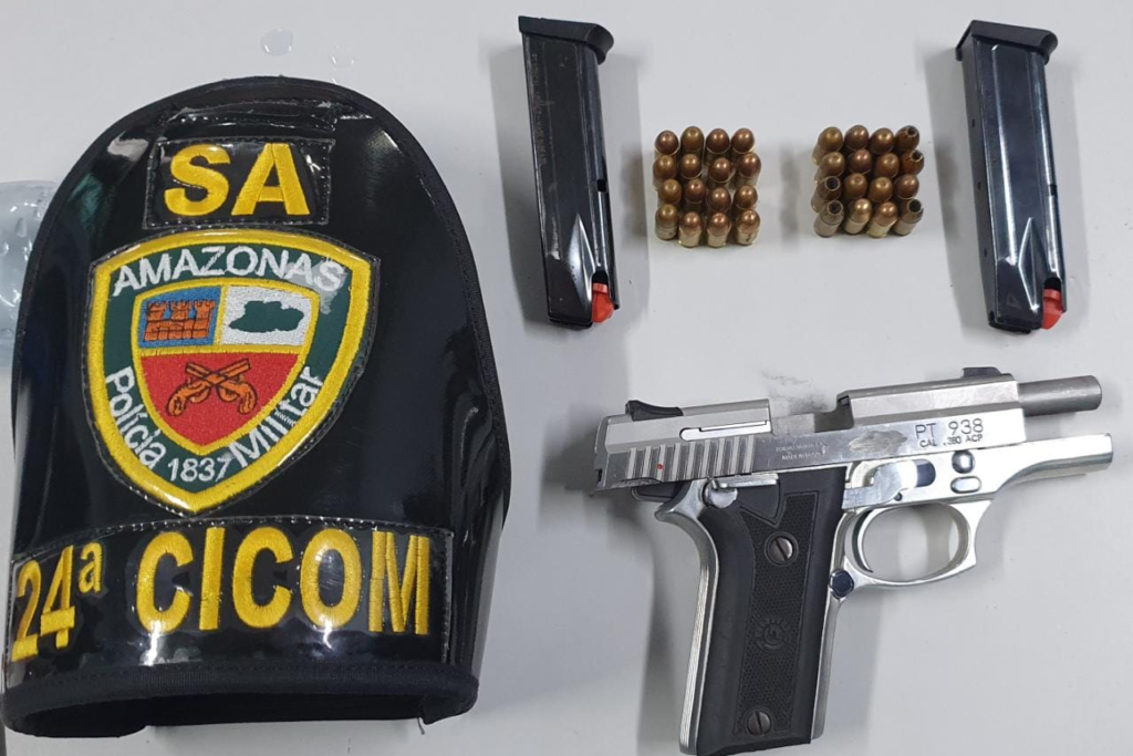 Um homem de 24 anos, com tornozeleira eletrônica foi detido após reagir à abordagem da Polícia Militar, na ação da 24ª Companhia Interativa Comunitária (Cicom), na manhã desta quinta-feira (13/05), por volta das 11h46, na Av. Lourenço da Silva Braga, próximo ao portão D da feira Manaus Moderna, no centro de Manaus. Com ele foi apreendida uma pistola Taurus 938, calibre 380, com numeração raspada, dois carregadores e 32 cartuchos intactos.