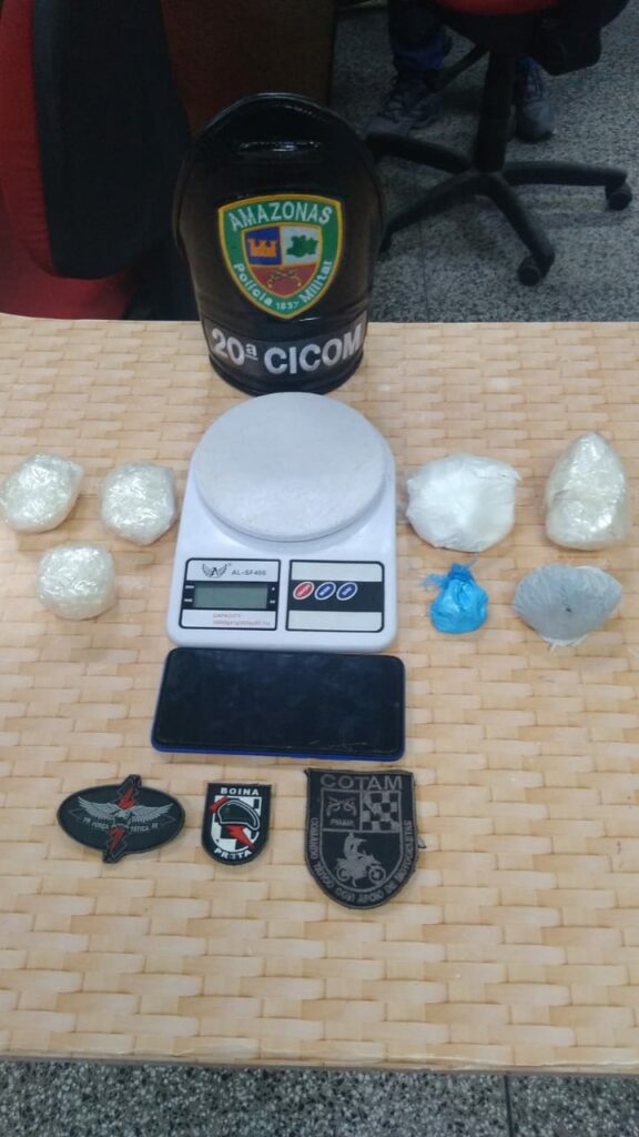 Com o homem foram encontradas duas porções médias de material entorpecente semelhante à cocaína. Ao consultarem a placa da motocicleta, os policiais identificaram a restrição de roubo. A PM também realizou buscas em um endereço indicado pelo homem, onde foram encontradas mais porções de substâncias ilícitas.