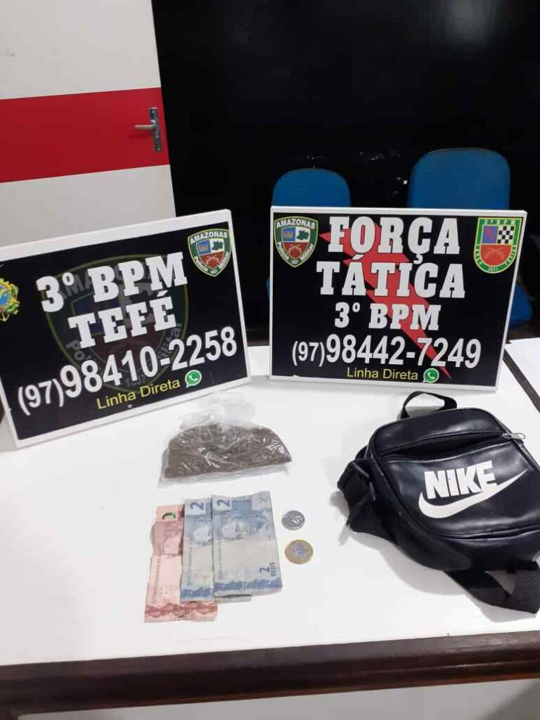 Policiais militares do 3° Batalhão de Polícia Militar (BPM) detiveram neste domingo (13/06), por volta das 18h40, um homem de 26 anos por envolvimento com o tráfico de entorpecentes, na rua José Luciano Rodrigues Alves, bairro Vila Nova, em Tefé, município a 523 quilômetros de Manaus.
