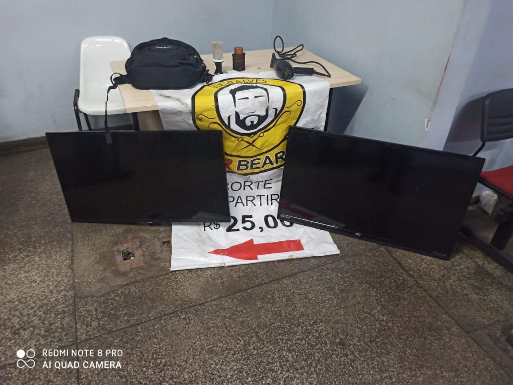 Com ele, foram apreendidas duas TV’s de 40 polegadas e um secador de cabelo que estava dentro de uma mochila.