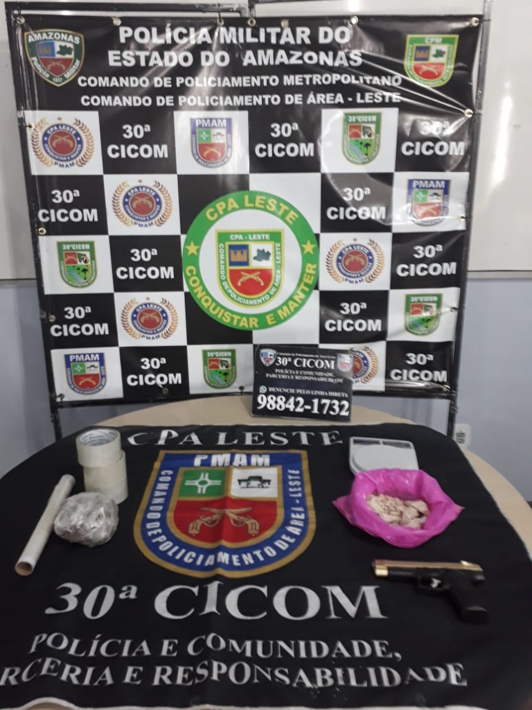 Policiais Militares da 30ª Companhia Interativa Comunitária (Cicom) detiveram, nesta segunda-feira (14/06), por volta das 12h, um jovem de 20 anos, por posse de entorpecentes e arma de fogo falsa, no bairro Jorge Teixeira, zona leste de Manaus.