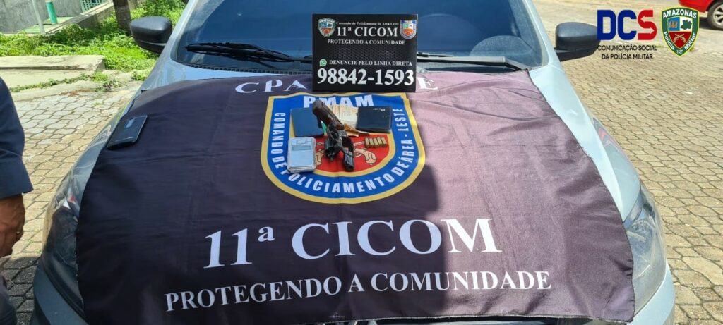 No beco dos Inocentes, bairro Coroado, zona leste, policiais da 11ª Companhia Interativa Comunitária (Cicom) prenderam, em flagrante, um homem de 34 anos por porte ilegal de arma de fogo. Com ele, um revólver calibre 38, cinco munições intactas, uma balança de precisão e R$ 162 em espécie foram apreendidos.