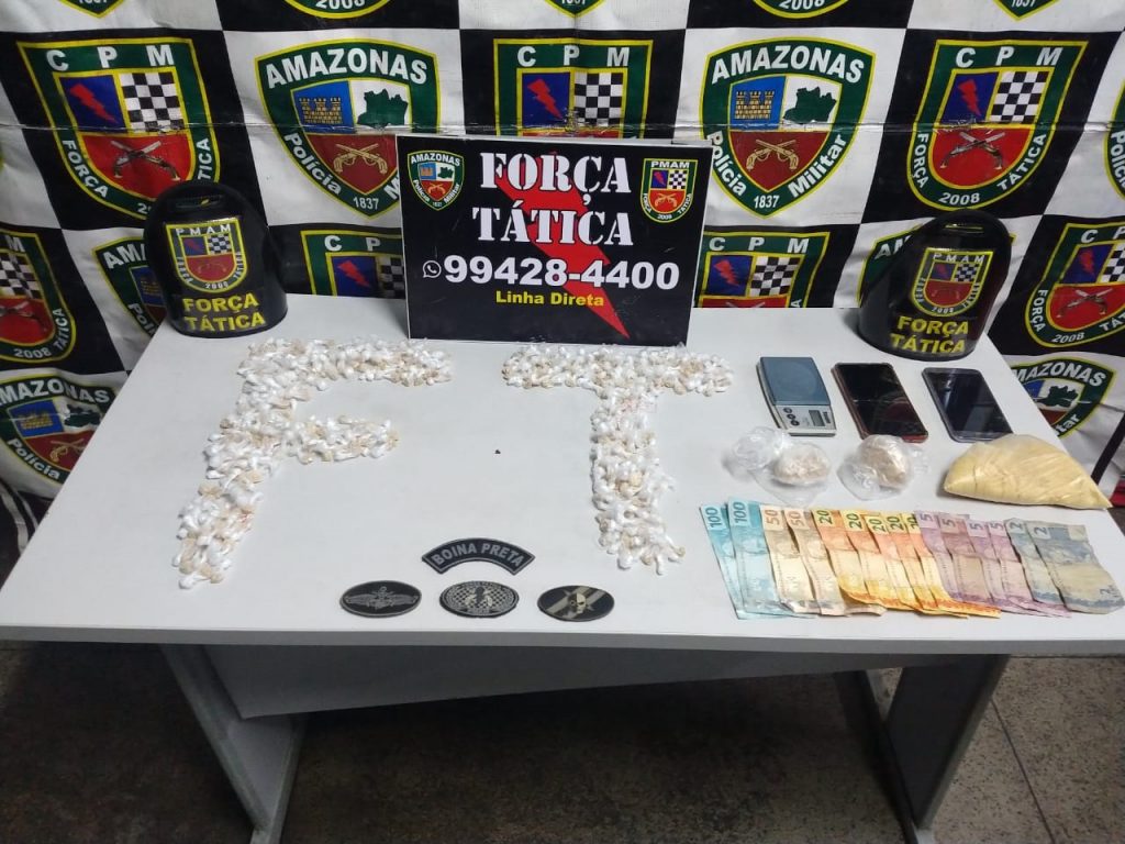A dupla foi questionada pela equipe e informaram onde se localizava a boca de fumo na qual eles adquiriram o entorpecente. A Força Tática foi ao endereço informado, onde foram detidos no interior da boca de fumo mais dois suspeitos e em posse dos mesmos mais entorpecentes embalados. Ainda durante a ação também foram apreendidas várias porções em sacos separados para a comercialização, celulares e dinheiro em espécie.