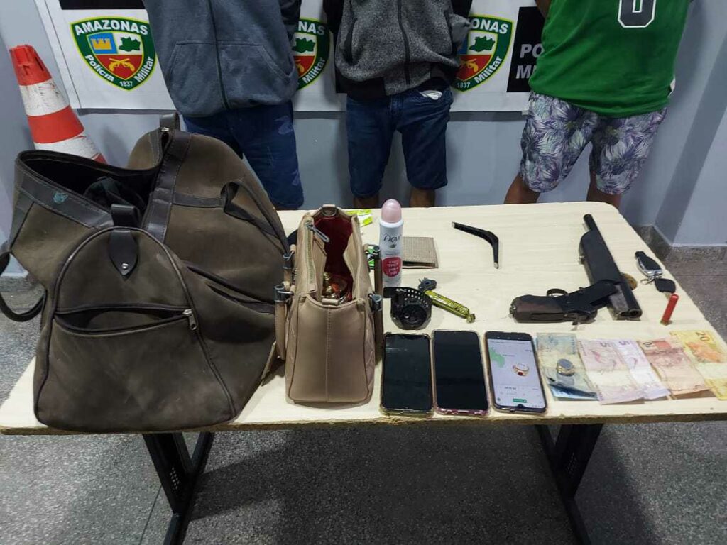 Com um deles foi encontrado o aparelho celular da vítima e, no interior do veículo, uma arma de fogo de fabricação caseira com uma munição não deflagrada utilizada no delito, uma bolsa, pertences pessoais, aparelhos celulares e uma quantia de aproximadamente R$ 50. O trio foi apresentado com o material apreendido ao 6° Distrito Integrado de Polícia (DIP), para a conclusão dos procedimentos legais e cabíveis.