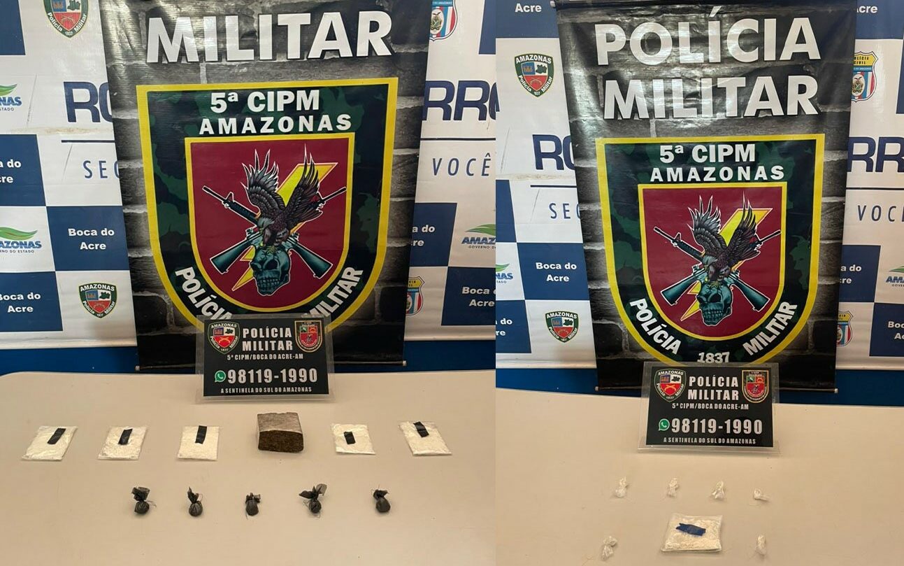 Um homem de 40 anos foi preso por tráfico de drogas no município de Boca do Acre (a 1.028 quilômetros de Manaus). A equipe realizava o patrulhamento de rotina pelas ruas do município, quando recebeu uma denúncia anônima que informava sobre um homem que estaria comercializando drogas. No local, os policiais militares abordaram o suspeito, encontrando com ele nove tabletes de maconha, mudas de planta de maconha e R$ 85 em espécie. Ele foi conduzido à delegacia do município, onde foi autuado em flagrante por tráfico de drogas.