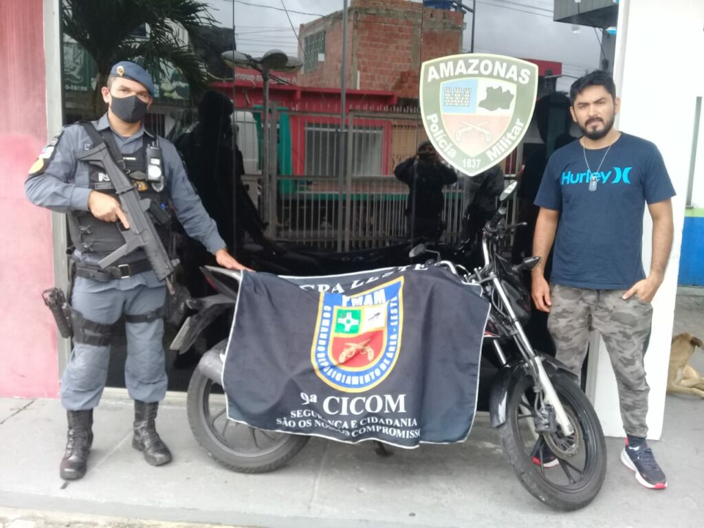 O outro veículo recuperado pela Cicom, por volta das 14h, quando a guarnição da viatura 6123 localizou a motocicleta OAB 5535, abandonada na Av. Autaz Mirim. O proprietário foi comunicado e o veículo foi entregue a ele na Delegacia Especializada em Roubos e Furtos de Veículos (DERFV), para efetuar a baixa de restrição. O veículo estava com a placa OAB 5585, com fita isolante, sendo que o chassi e motor sem sinais de adulterações.