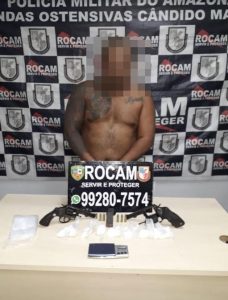 Um homem de 34 anos foi preso após ser abordado por policiais das Rondas Ostensivas Cândido Mariano (Rocam),  no bairro Nova esperança, zona oeste de Manaus. Com ele foram encontrados dois revólveres calibre 38 com numeração suprimida e seis munições não deflagradas, oito porções médias e uma pequena, possivelmente de cocaína, além de uma balança de precisão e um carregador de pistola sem munição.