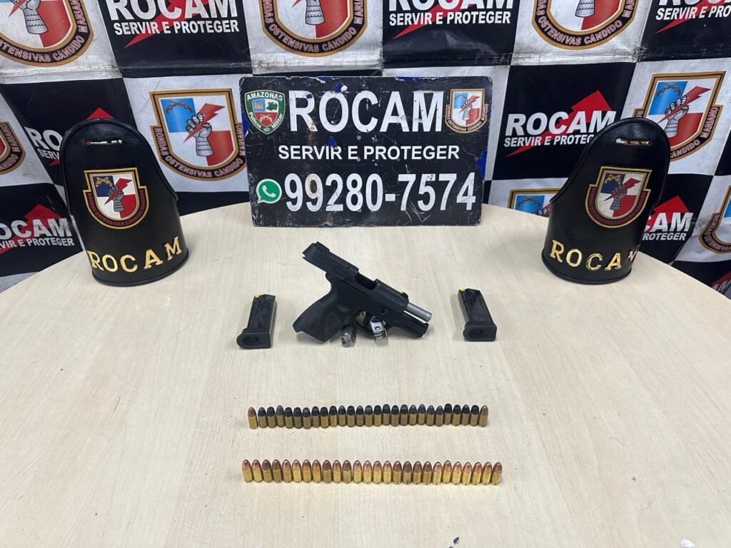 A Polícia Militar do Amazonas (PMAM), por meio das Rondas Ostensivas Cândido Mariano (Rocam), prendeu um homem, 30 anos, e apreendeu um adolescente, de 15. As ações aconteceram entre sábado (12/10) e domingo (13/10), na zona oeste de Manaus, e resultaram na apreensão de três armas de fogo e mais de 50 munições.