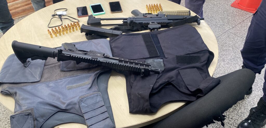 Durante a ação policial, foram apreendidos dois fuzis de calibre 40 e 9 milímetros, além de 60 munições, dois carregadores, dois coletes balísticos e três aparelhos celulares.