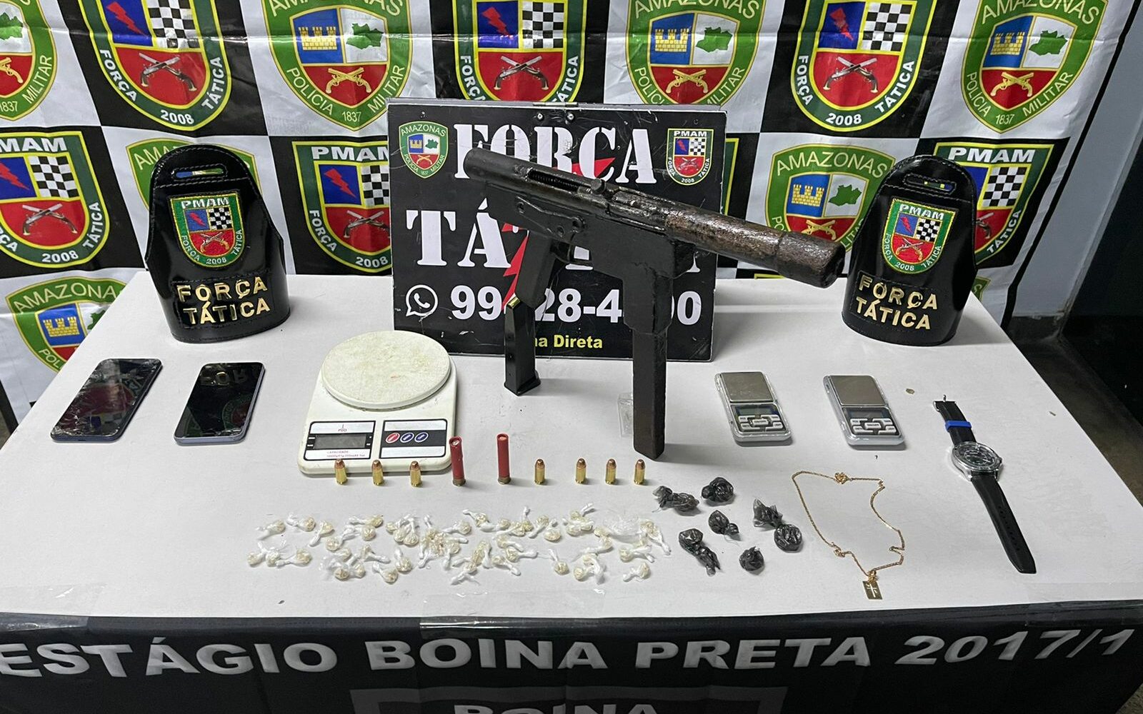 Outra ocorrência resultou na prisão de um homem, de 20 anos, na rua Nova Lusitânea, bairro Crespo, em posse de uma submetralhadora; duas munições calibre .36; sete munições .40; 55 porções de oxi e três balanças. O caso registrado no 1º DIP.