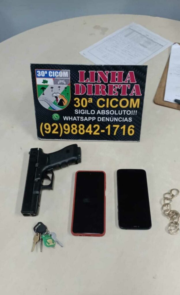 Já na zona leste, a equipe policial da 30ª Cicom realizava patrulhamento de rotina, no bairro Jorge Teixeira, quando foi acionada para atender ocorrência de roubo de veículo. Durante diligências, dois homens foram presos e a motocicleta foi recuperada. Com eles, também foi apreendida uma arma falsa. A dupla e o material apreendido foram encaminhada para o 14° DIP.