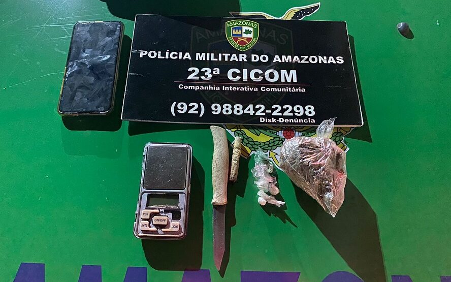 No bairro Distrito Industrial 2, zona leste, policiais da 30ª Cicom apreenderam 120 trouxinhas de maconha, oxi e cocaína em posse de dois homens, de 24 e 25 anos. A guarnição da PMAM também localizou uma arma de fogo caseira calibre 12 e uma arma de brinquedo com a dupla. Eles foram levados ao 14º DIP, onde foram autuados em flagrante tráfico de drogas e porte ilegal de arma de fogo.