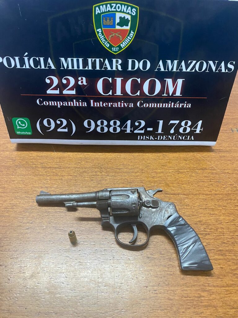 Durante as diligências, os PMs solicitaram que o suspeito abrisse a porta e, após buscas no imóvel, foi encontrado um revólver calibre 32 com uma munição intacta. A vítima confirmou que o homem havia trancado a porta e a impedido de se retirar do local.