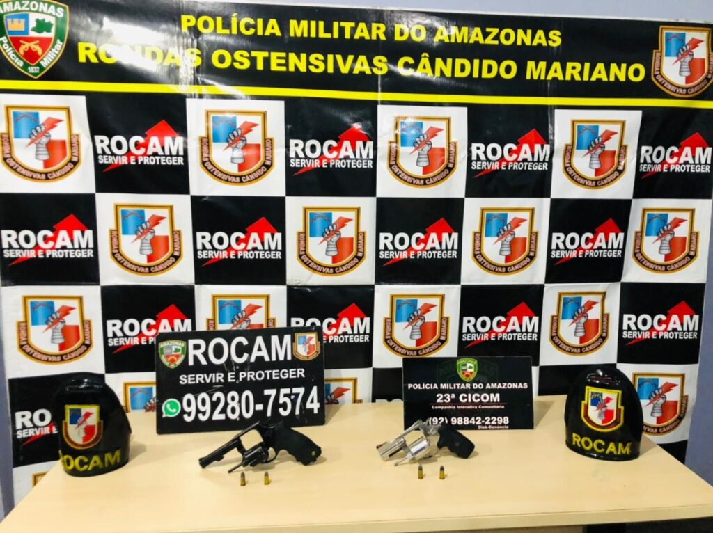 As equipes realizaram buscas na residência e encontraram o suspeito, responsável pela residência, onde foi encontrado dois revólveres calibre 38, das marcas Taurus e Rossi, cada um com duas munições não deflagradas, que foram apreendidos. Com base no flagrante, ele foi apresentado ao 1º Distrito Integrado de Polícia (DIP) para a conclusão dos procedimentos legais.