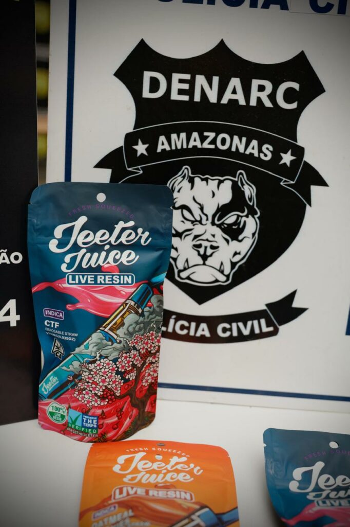 A Polícia Civil do Amazonas (PC-AM), por meio do Departamento de Investigação sobre Narcóticos (Denarc), em conjunto com a Receita Federal, apreendeu, na quarta-feira (14/01), uma remessa de maconha líquida interceptada em Manaus enquanto era transportada para o estado de Roraima. A maconha líquida é comercializada em unidades conhecidas como “jets”, semelhantes a cigarros eletrônicos, com valor estimado entre R$ 500 e R$ 600 cada.