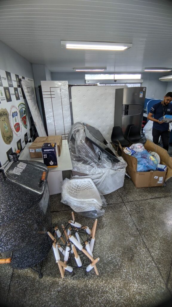 Durante a operação, foram apreendidos vários materiais provenientes do golpe, como eletrodomésticos e eletrônicos, materiais de decoração e de construção, entre eles, portas, aduelas e tintas.
