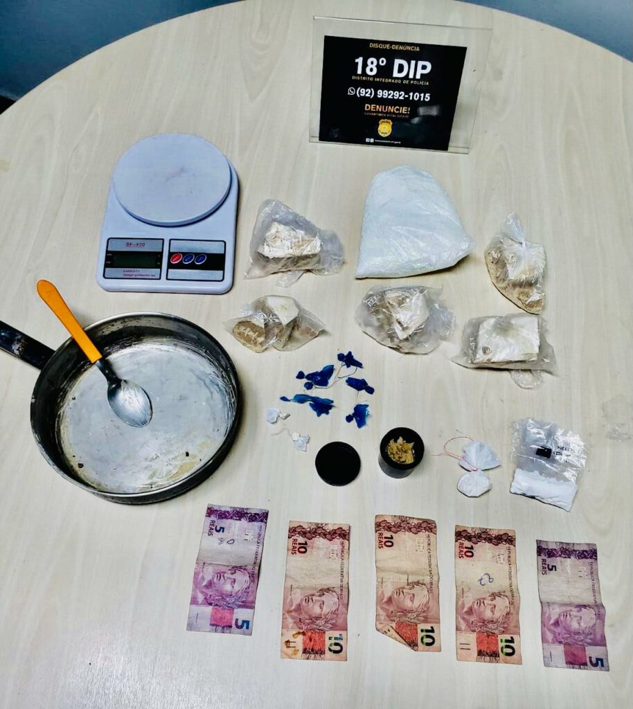 Ainda segundo Cunha, com os indivíduos foram encontradas várias porções de maconha, oxi e cocaína, além de uma balança de precisão e dinheiro.