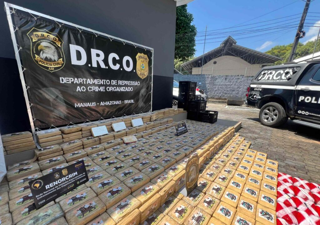 A Polícia Civil do Amazonas (PC-AM), por meio do Departamento de Repressão ao Crime Organizado (DRCO), apresentou nesta segunda-feira (11/08) resultados de investigação que culminou na prisão em flagrante de Pedro Rodrigues de Souza, de 51 anos, com 700 quilos de cocaína pura, avaliados em mais de R$ 40 milhões. A ação ocorreu no bairro Vila Buriti, região do Porto da Ceasa, zona sul. A droga estava acondicionada em 19 sacos de fibra dentro de um caminhão baú.