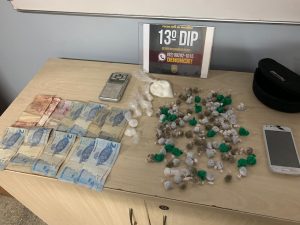 Flagrante – Conduzido ao prédio do 13º DIP, Cristiano foi autuado em flagrante por tráfico de drogas. Ao término dos procedimentos cabíveis na unidade policial, ele será levado para Audiência de Custódia no Fórum Ministro Henoch da Silva Reis, bairro São Francisco, zona sul da capital.