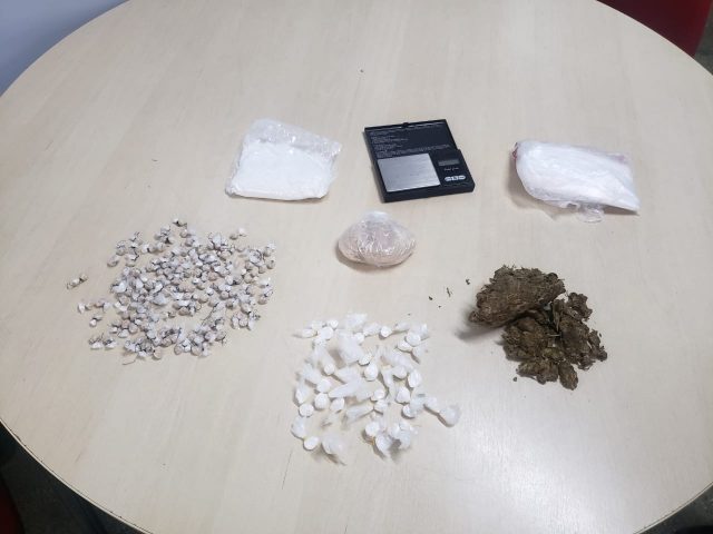 Ao chegarem ao local, durante revista em um dos cômodos da casa, foram encontradas porções de maconha, cocaína e oxi devidamente embaladas para a posterior comercialização das mesmas, além de uma balança de precisão e materiais diversos para fazer a correta embalagem da droga. Diante dos fatos apresentados, foi dada voz de prisão para ele, o qual foi conduzido à delegacia para procedimentos.