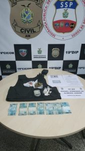 Materiais apreendidos – Segundo o titular do 19º DIP, durante as buscas na casa do infrator, foram encontrados R$ 3,5 mil em espécie proveniente do tráfico de drogas, uma porção grande de maconha, seis porções de entorpecentes com aspecto de oxi, além de uma capa de colete balístico e uma balança de precisão.