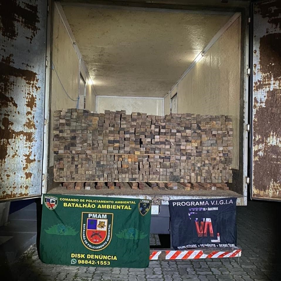 Polícia militar apreende carga de madeira ilegal em Manaus