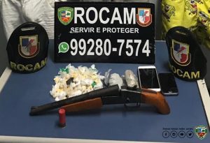 De acordo com informações dos policiais que atenderam a primeira ocorrência, três suspeitos de 19, 20 e 22 anos foram abordados enquanto comercializavam entorpecentes na rua Brenda, no bairro Colônia Terra Nova, zona norte. Com eles, foi encontrada uma arma de fogo tipo escopeta modificada, calibre 12, com numeração suprimida, uma munição calibre 12, marca CBC, três porções médias de substância entorpecente, supostamente maconha tipo skunk, 23 trouxinhas de substância entorpecente, supostamente maconha, 108 trouxinhas de substância entorpecente, supostamente pasta-base de cocaína, uma balança de precisão, dois celulares e uma motocicleta com restrição de roubo, de placa NPB 9840, Honda CG 150 Titan, cor preta. O trio foi conduzido ao 6º Distrito Integrado de Polícia (DIP) para instauração de procedimentos judiciais cabíveis.