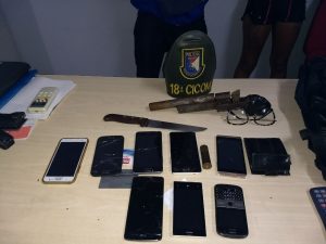 Na revista pessoal aos dois jovens, foram encontrados, dentro de uma mochila, uma arma de fogo caseira, calibre 12, com 2 duas munições de mesmo calibre intactas, uma faca, uma carteira porta cédulas e oito aparelhos de telefone celular. O casal confessou que os objetos eram originados de um roubo feito às pessoas que estavam no ônibus de linha 560.