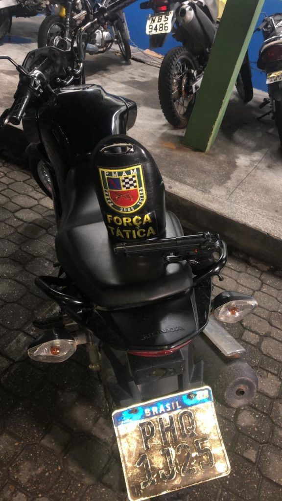 Policiais militares da Força Tática detiveram, na noite desta segunda-feira (1º/06), dois homens por roubo e porte ilegal de simulacro de arma de fogo, no bairro Cidade Nova, zona norte da capital. Com eles, os policiais apreenderam um simulacro de arma de fogo, tipo pistola, e uma motocicleta modelo Honda, Titan 160 de cor preta, placa PHQ-1J25, com restrição de roubo.