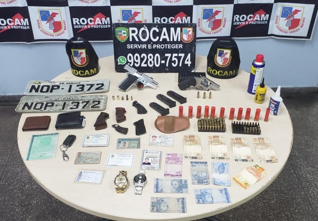 Policiais militares das Rondas Ostensivas Cândido Mariano (Rocam), em patrulhamento pela zona leste de Manaus, por volta das 19h30 desta quarta-feira (13/11), receberam denúncias de que na rua 12, 2ª etapa do bairro São José, dois homens estavam dentro de um carro da marca Golf de cor cinza, provavelmente armados, em atitude suspeita.