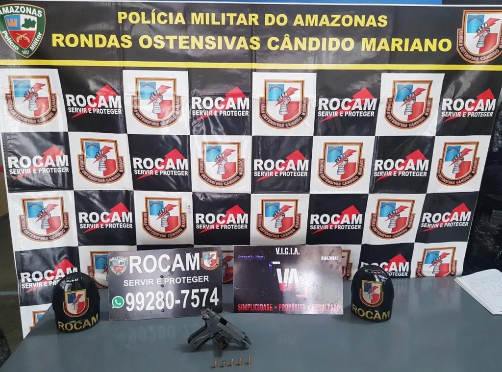 Policiais militares das Rondas Ostensivas Cândido Mariano (Rocam), nesta quinta-feira (26/11), detiveram um homem de 20 anos, que possui mandado de prisão em seu nome e estava portando arma de fogo. O fato aconteceu no município de Tabatinga, distante 1.108 quilômetros em linha reta de Manaus.