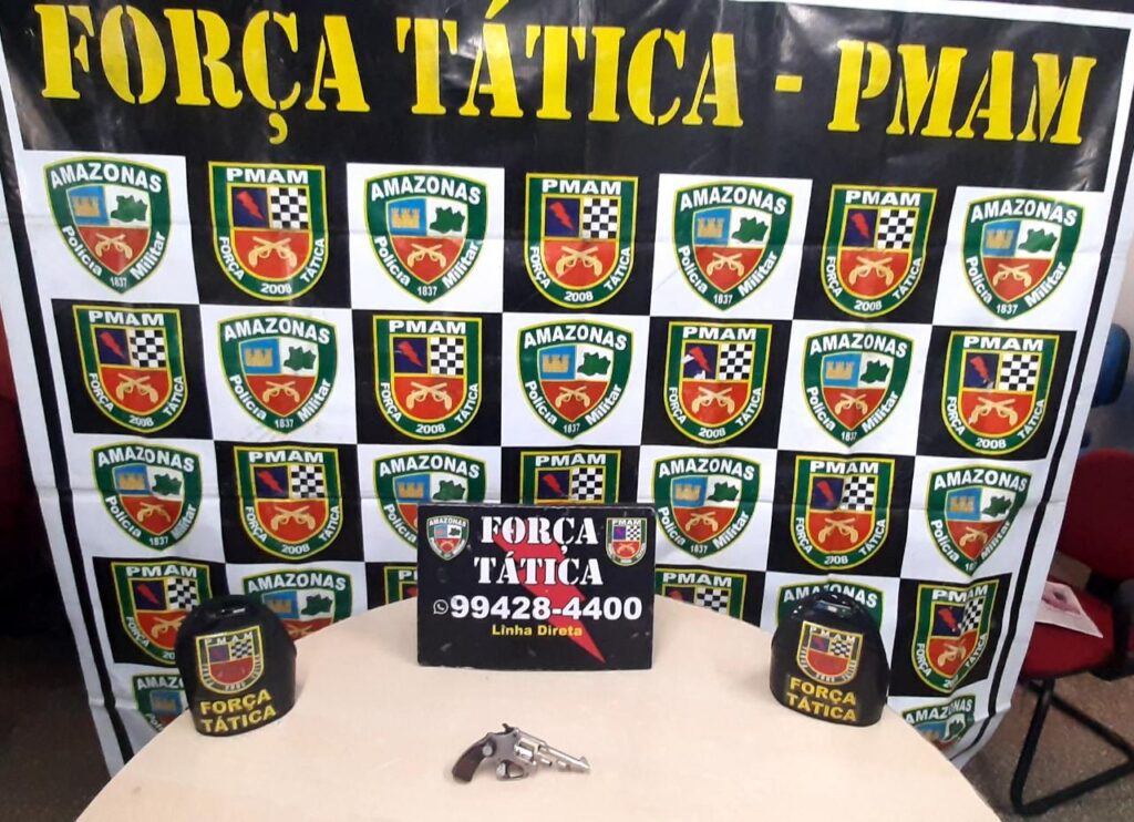 A equipe em patrulhamento de rotina, recebeu denúncia, através do Linha Direta, informando que um homem estava portando uma arma de fogo naquela localidade. A Forca Tática foi ao local e avistou um cidadão com as características denunciadas. Na busca pessoal foi encontrado um revólver calibre 22, sem munições.