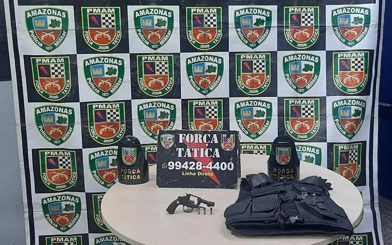Policiais militares da Força Tática detiveram, na madrugada desta terça-feira (04/01), um homem, de idade não informada, em posse de arma de fogo e munições, no bairro Tarumã, zona oeste de Manaus.