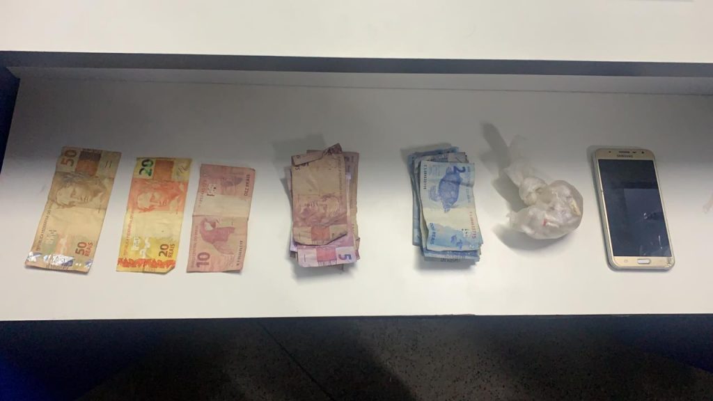 Os policiais da viatura 6347 realizavam patrulhamento pela avenida Lourenço da Silva Braga, por volta das 23h, quando um homem que transitava pela via demonstrou comportamento suspeito, retornando repentinamente e correndo em seguida. O suspeito foi alcançado e, após abordagem e revista pessoal, foram encontradas com ele 30 porções pequenas de substância supostamente entorpecente com características de oxi, a quantia em dinheiro de R$ 179,25, além de um celular cor dourada e um relógio cor azul.