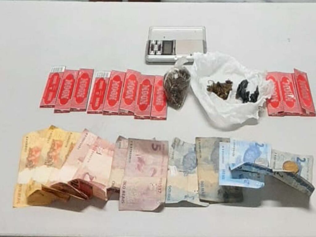 Na abordagem, os policiais encontraram com ele três porções de substância com aspecto de oxi e 23,6 gramas com características de maconha, além da quantia de R$ 100, uma balança de precisão e 10 pacotes de papel usado para o consumo de cigarros.