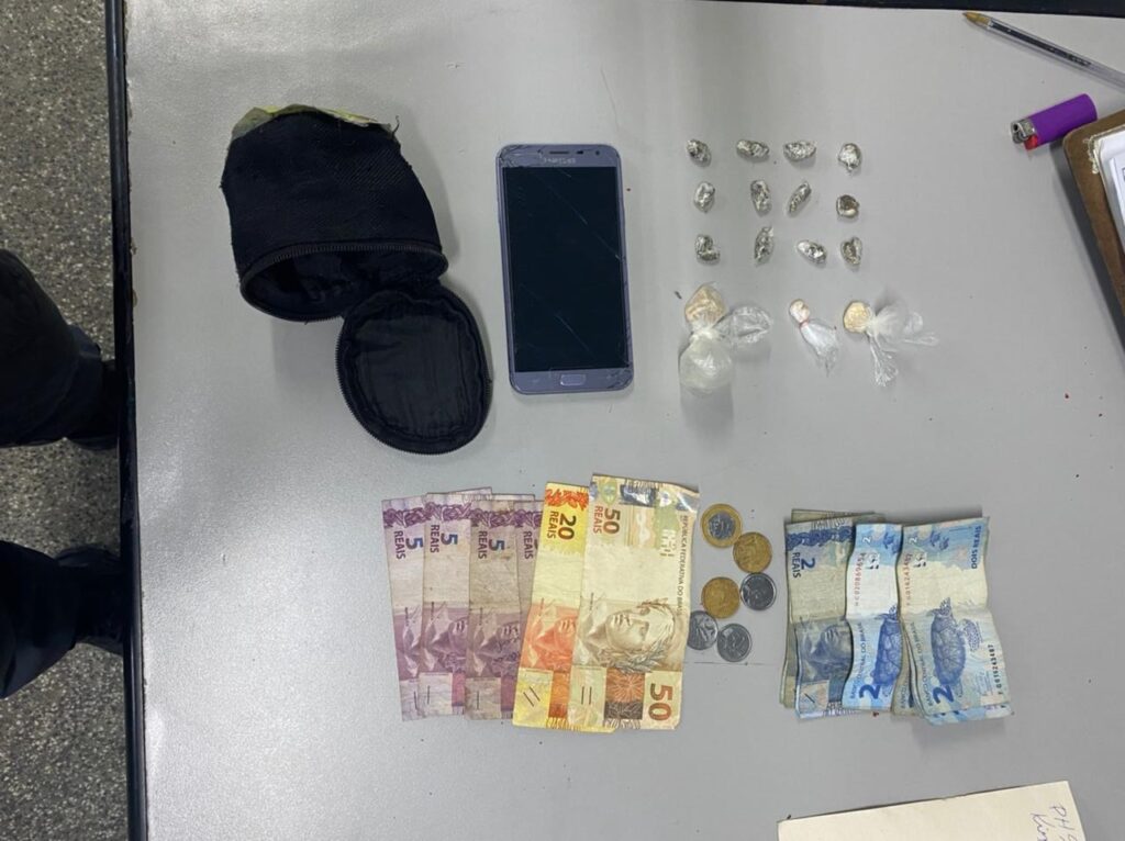 Durante abordagem aos suspeitos e buscas no local onde eles estavam, os policiais encontraram 12 trouxinhas de maconha, duas trouxinhas de oxi, uma porção de oxi, um aparelho celular e R$ 132,00 em espécie.
