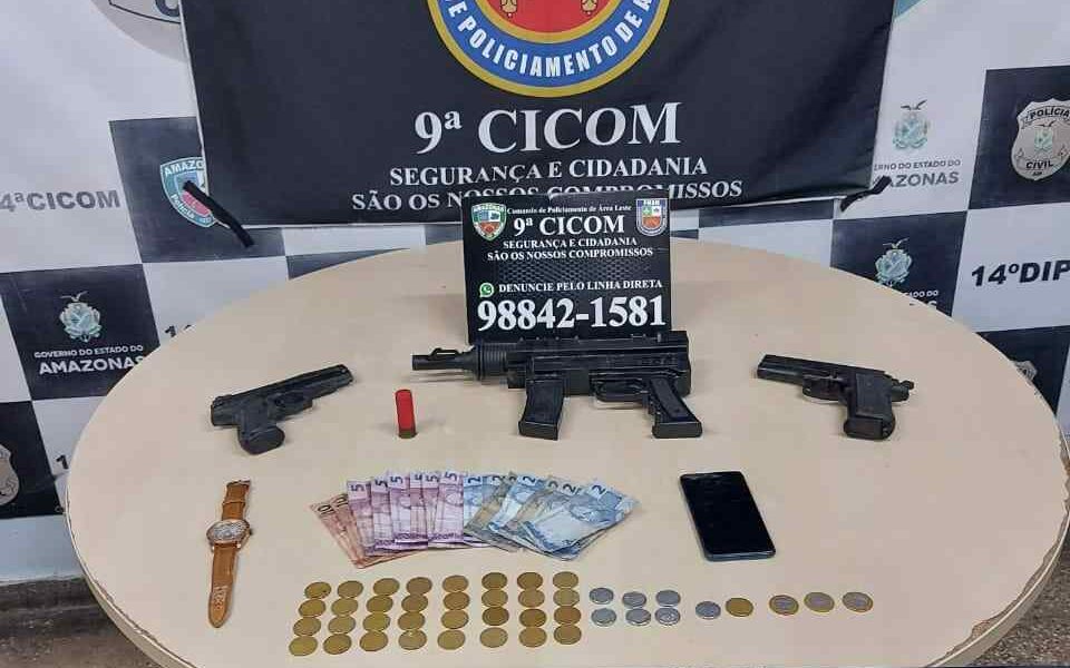 Na zona leste, por volta das 5h30 de hoje, a equipe policial na viatura 6152 da 11ª Cicom deteve dois homens, de idades não informadas, responsáveis por assaltos a transeuntes, no bairro Ouro Verde. A ação ocorreu durante patrulhamento na rua Francisco Bambolê, onde a equipe se deparou com dois indivíduos em uma motocicleta modelo Honda CG, cor prata, sem placa informada, no momento em que um deles desceu apontando uma arma de fogo para pessoas em um ponto de ônibus. A dupla fugiu após a ação, jogando a arma de fogo em via pública, e os policiais iniciaram acompanhamento.