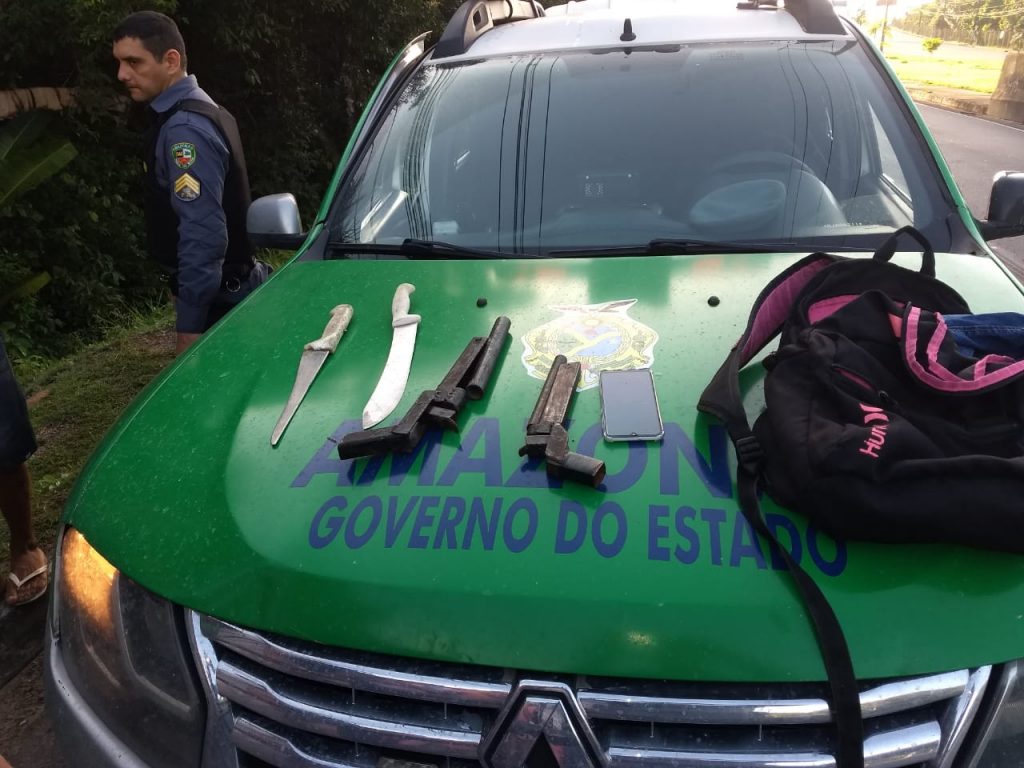 Policiais militares da 18ª Companhia Interativa Comunitária (Cicom), durante patrulhamento por volta das 6h40min deste sábado (15/02), detiveram um infrator na avenida Torquato Tapajós por porte ilegal de arma de fogo.