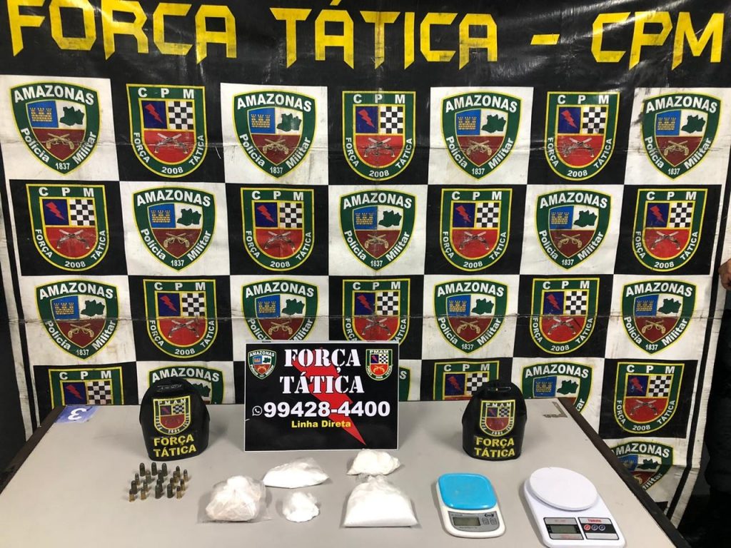 Equipe de Força Comando da Polícia Militar do Amazonas deteve, na tarde de terça-feira (18/02), um jovem de 22 anos em posse de substâncias entorpecentes e munições no conjunto Galileia, bairro Cidade Nova, zona norte da capital amazonense.