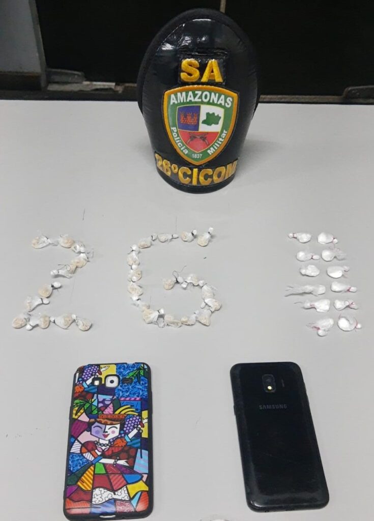 Policiais militares da 26ª Companhia Interativa Comunitária (Cicom) detiveram um jovem de 20 anos e apreenderam um adolescente de 16, encontrados em posse de 39 porções de drogas, na madrugada desta segunda-feira (29/03), no bairro Monte das Oliveiras, na zona norte da capital.